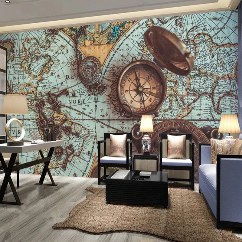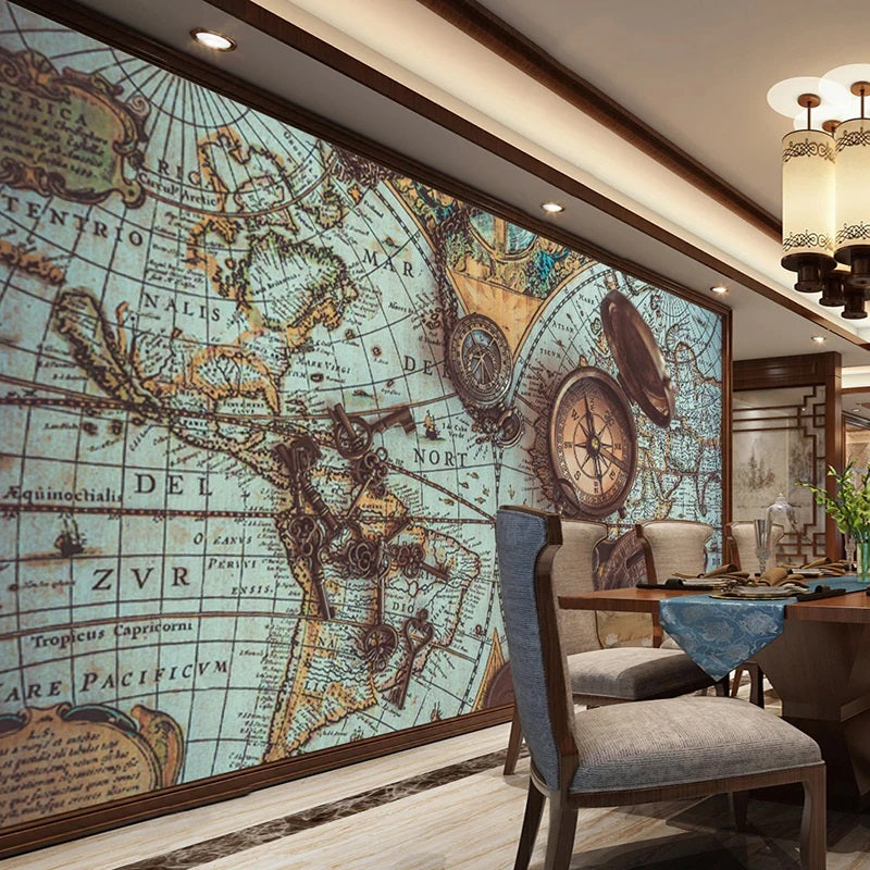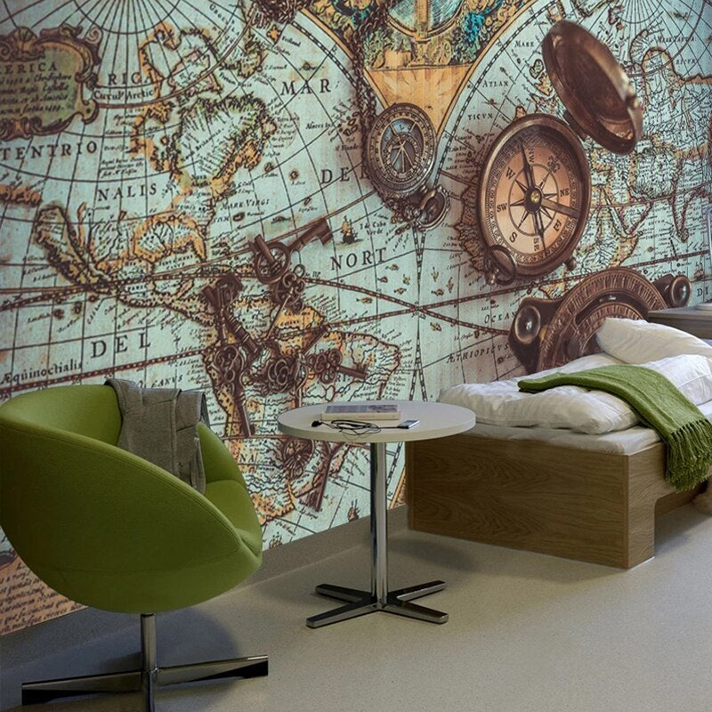 Our Retro World Map Mural Wallpaper in very high quality is a stylish old fashioned design in wonderful colors with a nostalgic touch. This beautiful vintage world map mural is perfect for the youth room, living room, bedroom, kitchen, lounge room, or office.