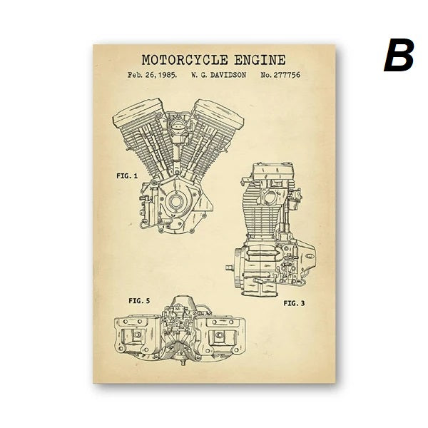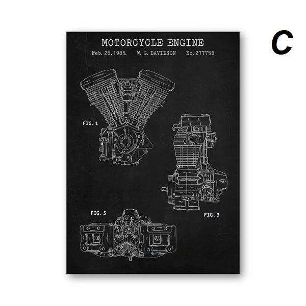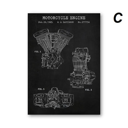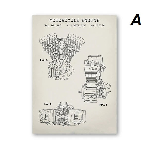 - Vintage Wall Art, Motorcycle Poster, Drawing Fine Art, Minimalist Canvas Print, Pictures For Living Room, Bedroom, Dining Room, Home, Office, Modern Art Décor.