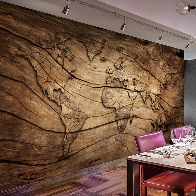 Our Vintage Wood World Map Mural Wallpaper in very high quality with a wood expression is stylish and a guaranteed eye-catcher for every room. The brown shades of the wallpaper pattern is perfect for the youth room, living room, bedroom, kitchen, lounge room, or office.