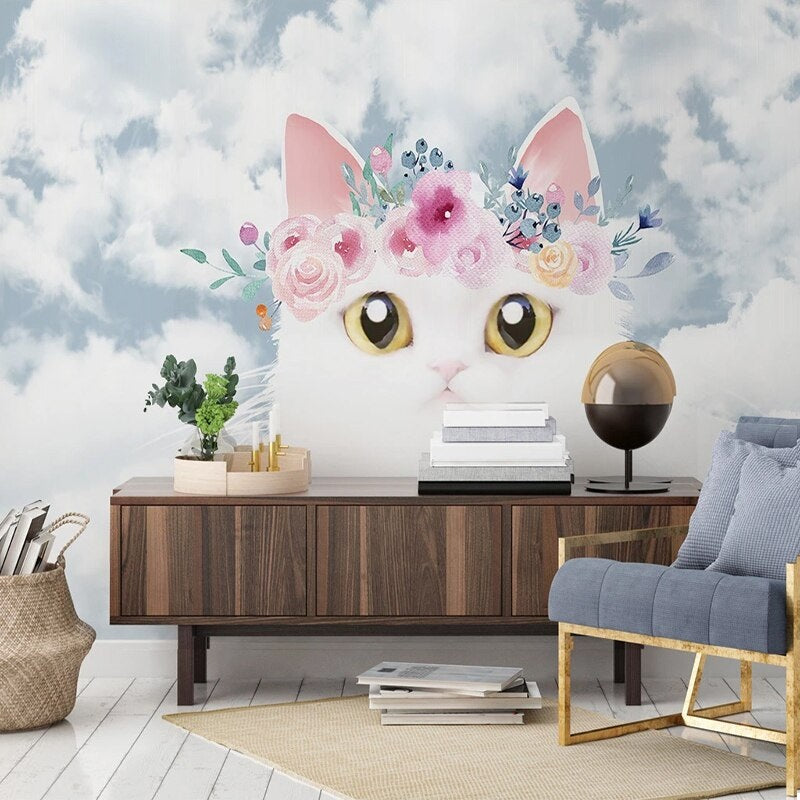 If you are looking for a cute nature wallpaper mural for your child’s bedroom or nursery, look no further than the heartwarming, White Kitty Mural Wallpaper. This mural features a cute kitty that your child will love and admire on their walls. The soft muted tones within the design will create a modern yet warm feel in your nursery, that will transform your little ones space into a fairy tale.